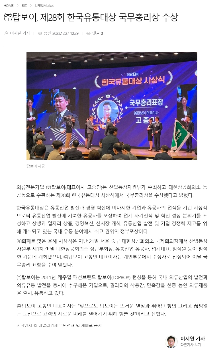 žº¸ÀÌ, Á¦ 28ȸ Çѱ¹À¯Åë´ë»ó ±¹¹«ÃѸ®»ó ¼ö»ó